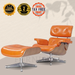 Luxe Lounge Chair & Ottoman in Camel Brown Waxed Leather and Walnut Wood